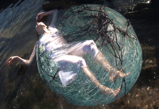 Obra coreográfica-visual en la cual se proyectan imágenes de seres humanos en movimiento dentro de esculturas de resina transparentes semi-sumergidas en una gran extensión de arena real.