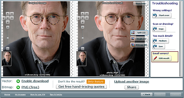 Convierta automáticamente las imágenes de mapa de bits, como JPEG s, GIF s y PNG s al fresco, limpio, arte escalable vector de EPS, SVG y PDF con el mejor software de trazado automático del mundo.