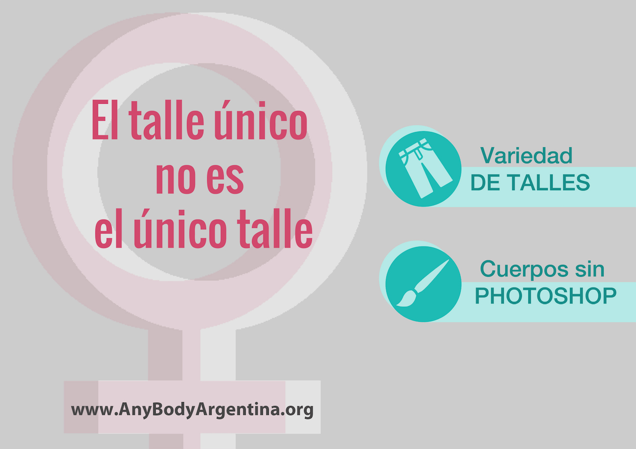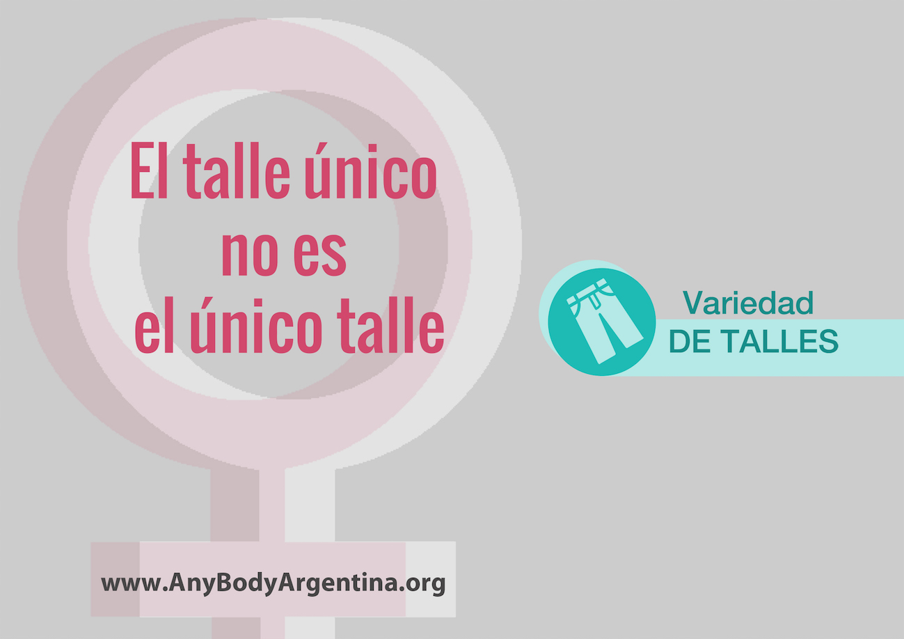 El 11 de enero de 2016, la ONG AnyBody Argentina lanza su nueva campaña, “El talle único no es el único talle” (#Noeselunicotalle) que busca reconocer a aquellas marcas de indumentaria que muestren el compromiso de ofrecer a su clientela una amplia variedad de talles.
