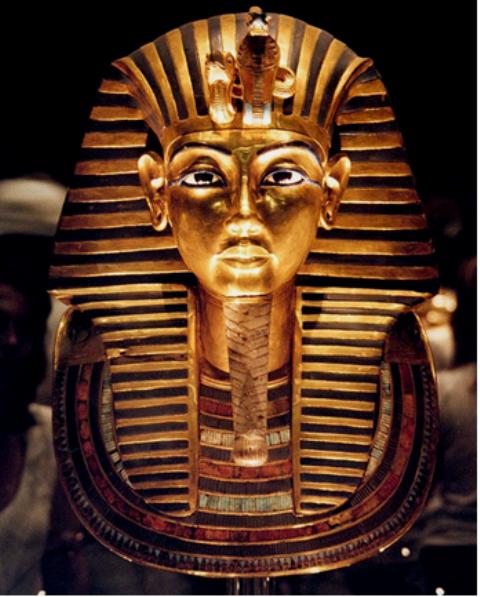 La utilización de una diadema de oro y piedras semipreciosas y la piel de un felino, como el leopardo, rodeando el torso a modo de capa y sujeta con sus propias garras, eran símbolo de realeza. Más arriba vemos una diadema con el símbolo de la serpiente cobra o uraeus, símbolo de la soberanía.